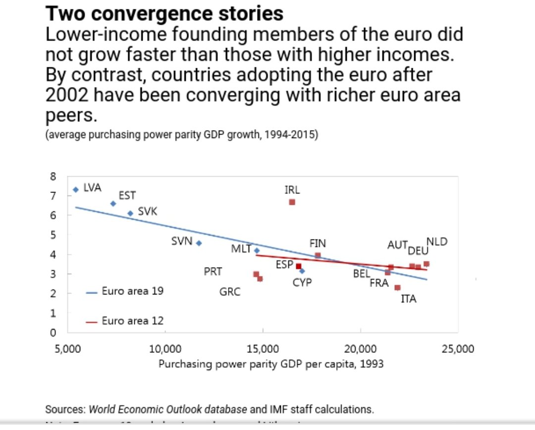 Argument koronny: '€ pomoże nam gonić Europę'. Od 20 lat 🇵🇱 miała 3-4x szybszy wzrost od eurozony. Goniliśmy Europę. Tymczasem z 12-ki założycielskiej strefy €, w latach 1999-2017 realny wzrost PKB/osobę zanotowały tylko Niemcy, Holandia i ..Grecja. Konwergencja nie zaistniała