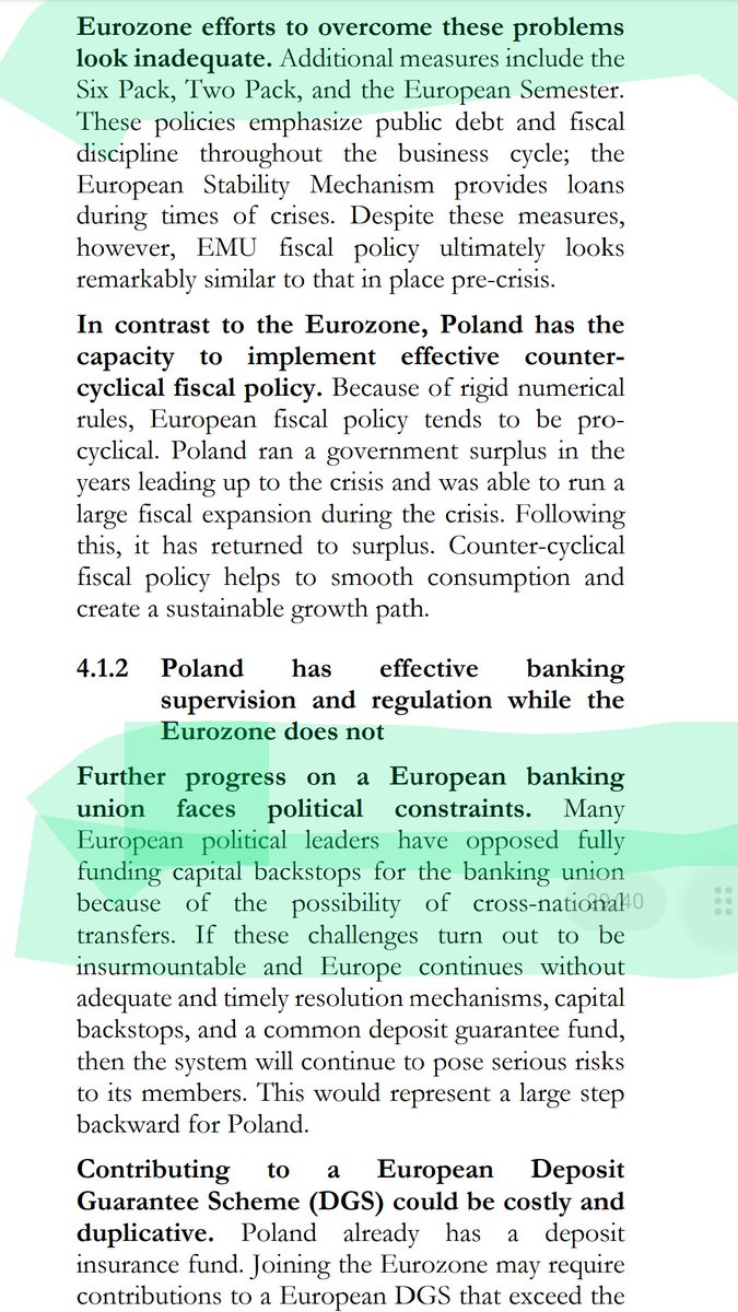 Trudno, po kolejnych kryzysach finansowych od 2008, znaleźć niezależne analizy wspierające członkostwo 🇵🇱. Na poziomie instytucji, z rekomendacji wycofał się nie tylko nie-pisowski NBP (2014), ale i MFW (2015). Puenta: 🇵🇱 nie jest gotowa, ryzyko przekracza potencjalne korzyści.