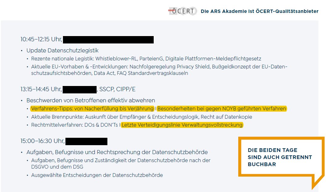 Industry lawyers (@bakermckenzie) now even give lectures on "how to fight data subjects complaints", with a special feature on @noybeu and many procedural "tricks" like simply complying with the #GDPR only once you have a complaint filed ("Nacherfüllung"), use the short...