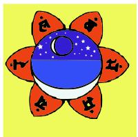 The larger has outward turned petals and represents the conscious dimension of existence. On the inside of the crescent moon is a similar petalled but smaller circle with petals facing inwards. This is the unconscious dimension, the store of formless karma. #yoga #kundalini