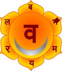 Traditional symbology Swadhisthana can be experienced as black in color, as it is the seat of primary ignorance. However, traditionally it is depicted as a six petalled vermilion or orange-red lotus. #yoga #kundalini