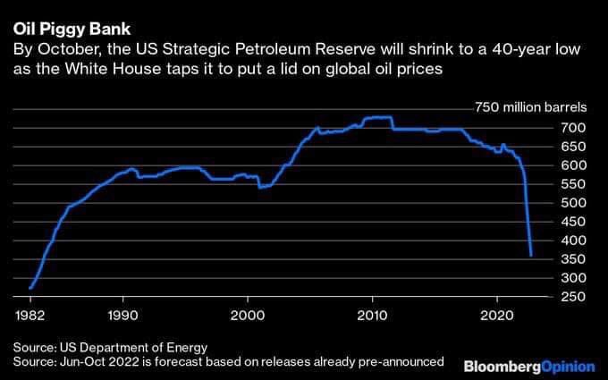 Il mese scorso Bloomberg rilanciava la notizia del US Department of Energy secondo cui a ottobre 2022 le riserve strategiche di petrolio americano 3/7