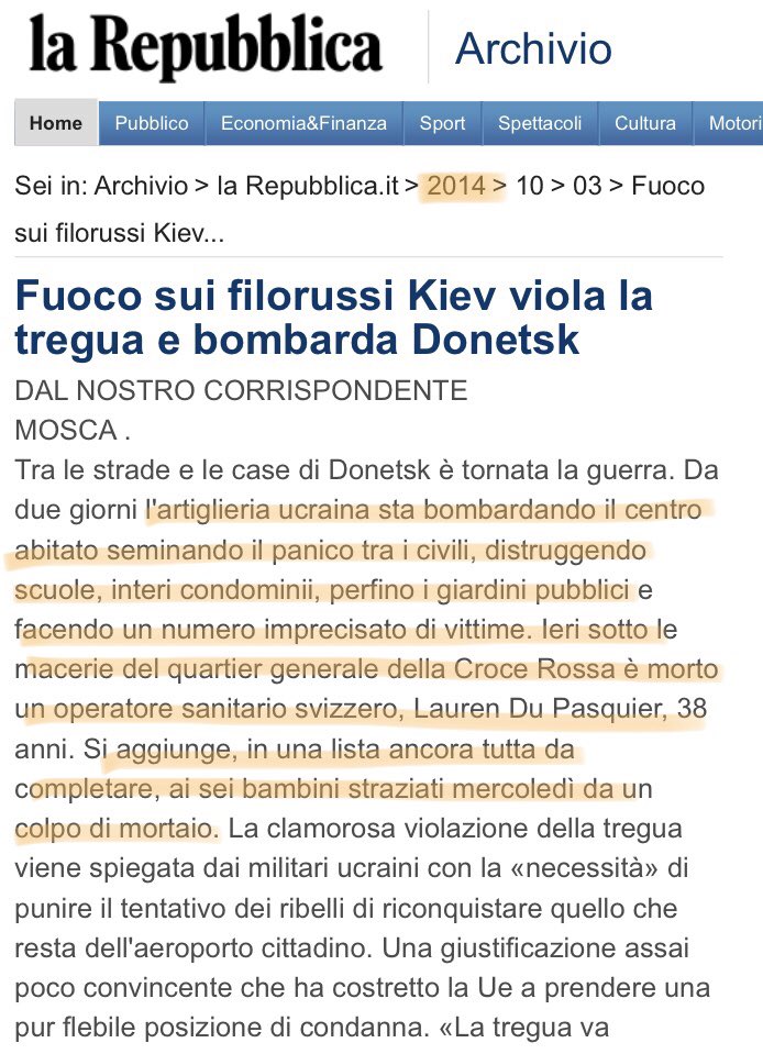 Amici che mi date del cripto fascista filo putiniano, anche se lo so che mi detestate io vi voglio bene lo stesso. Per questo vi consiglio di rileggere con attenzione questo articolo di Repubblica datato 3 ottobre 2014. 1/4