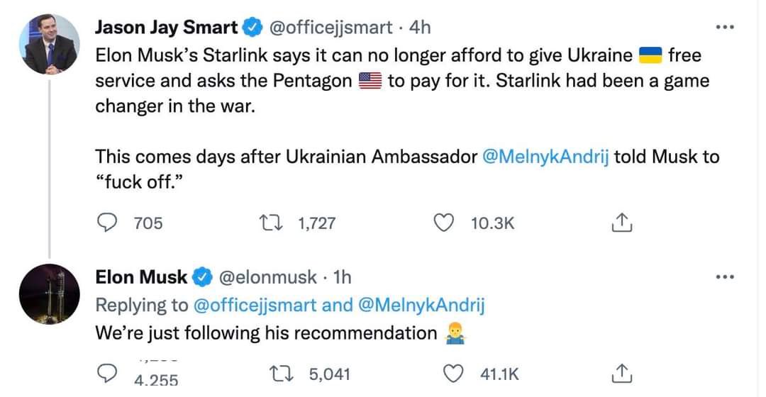 How can someone who wants to be Mr Twitler be so touchy about insults? Insults that came from publicly telling an entire nation to fuck off and hand over land to Russia?