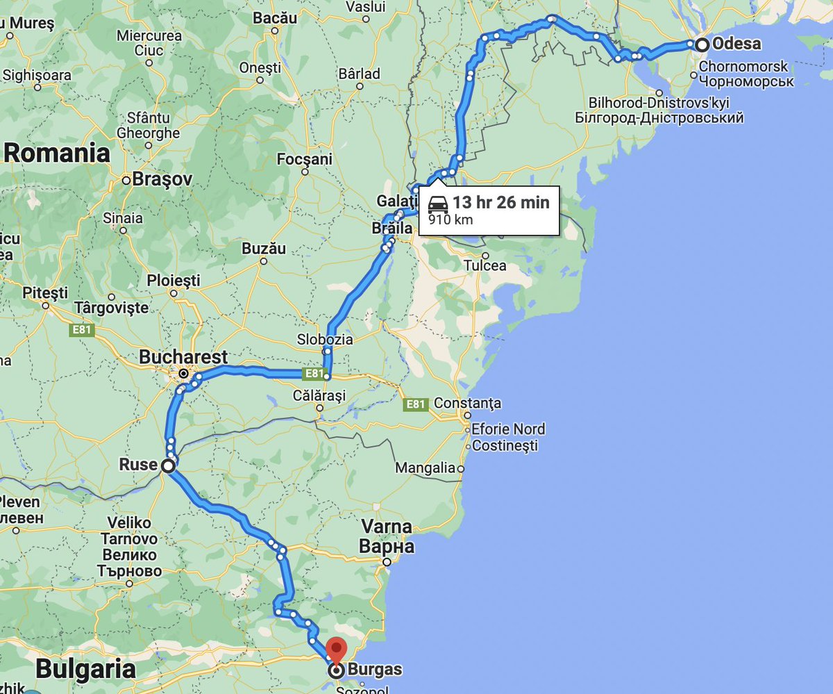 3/ According to the Russians, the cargo was sent from Odesa in Ukraine to Ruse on the Bulgarian border in early August 2022. It travelled via Romania and likely Moldova, sent under a contract with Kyiv-based company Translogistik UA to a company called Baltex Capital SA.