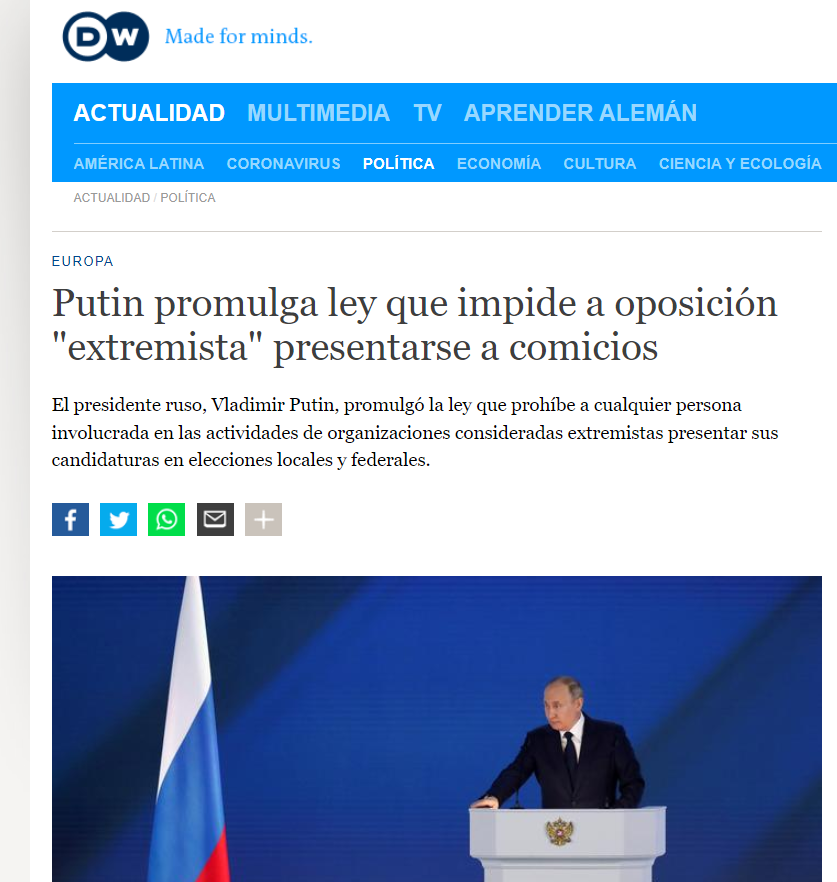 En junio de 2022 la Cámara Alta de la Duma rusa aprobó una ley que prohíbe la candidatura de personas que hayan colaborado con organizaciones “extremistas”. Como el que determina quien entra dentro de esa categoría es Putin, ya no hay figuras fuertes para enfrentarlo