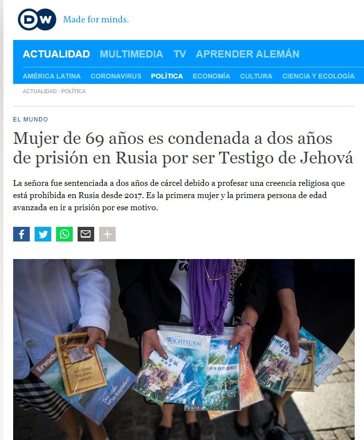 El edificio de la Iglesia Pentecostal de la Santísima Trinidad en Moscú fue derrumbado hace una semanas por orden del gobierno sin motivo aparente. Ya en 2017, la Corte Suprema rusa caratuló a los Testigos de Jehová como grupo extremista y prohibió el culto en todo el territorio