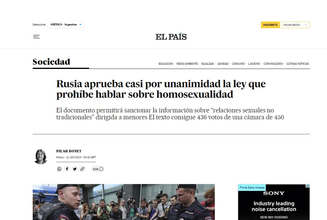 Ese encierro es parcialmente legal en Rusia desde junio de 2013 cuando la Duma prohibió la información sobre “relaciones sexuales no tradicionales”, en un texto ambiguo aplicado a discreción de las autoridades en procesos que terminan con frecuencia en multas o encarcelamientos