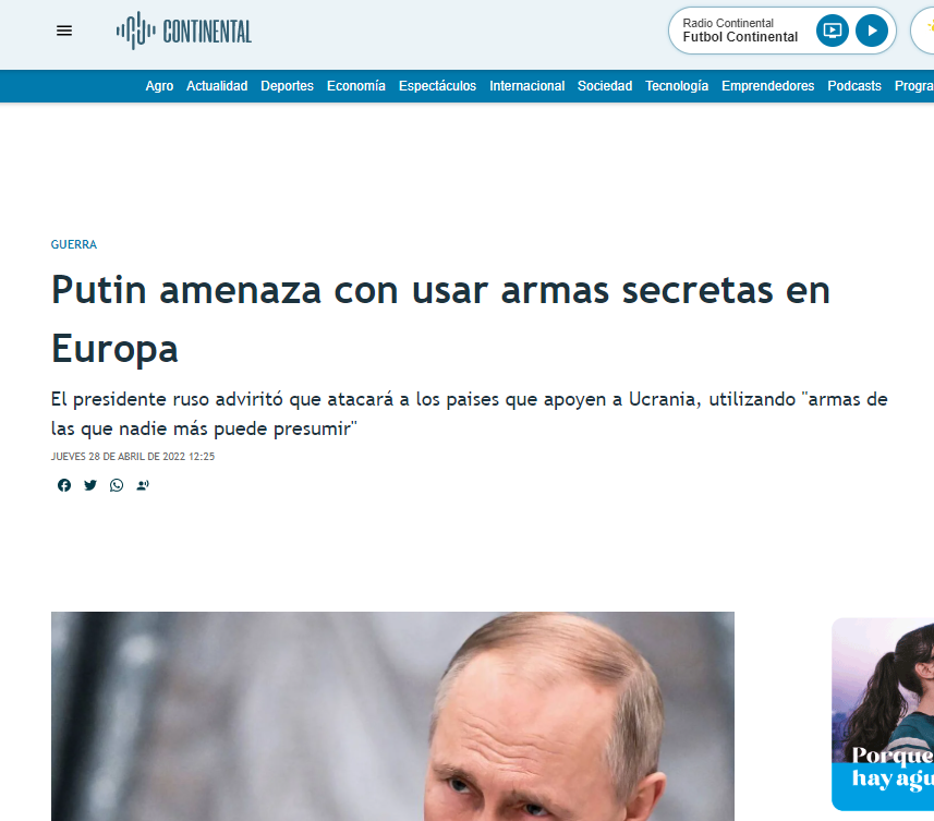 Y así llegamos a otra coincidencia: las armas secretas y avanzadas que cambiarían el curso de la guerra. Hitler tenía los cohetes V1 y V2, jets avanzados y tanques Tiger pero, como Putin hoy, prometía sistemas aun mas poderosos que solo habitaban en la mente de los líderes