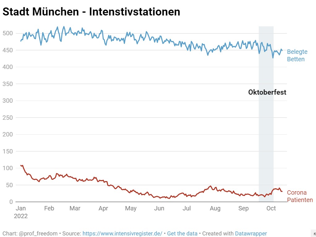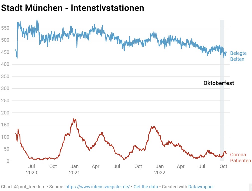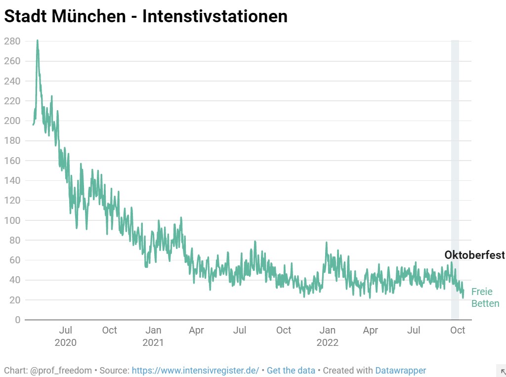 Es waren während der gesamten Pandemie zu keinem Zeitpunkt weniger Intensivbetten belegt in München als im Oktober 2022!