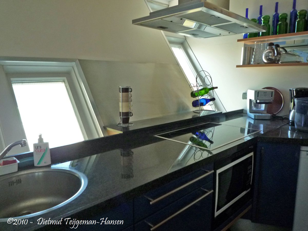 No sé cómo se puede cocinar en este cocina o dormir en esta cama o sentarte en este sofá sin perder la noción de lo que es vertical y lo que es horizontal.
