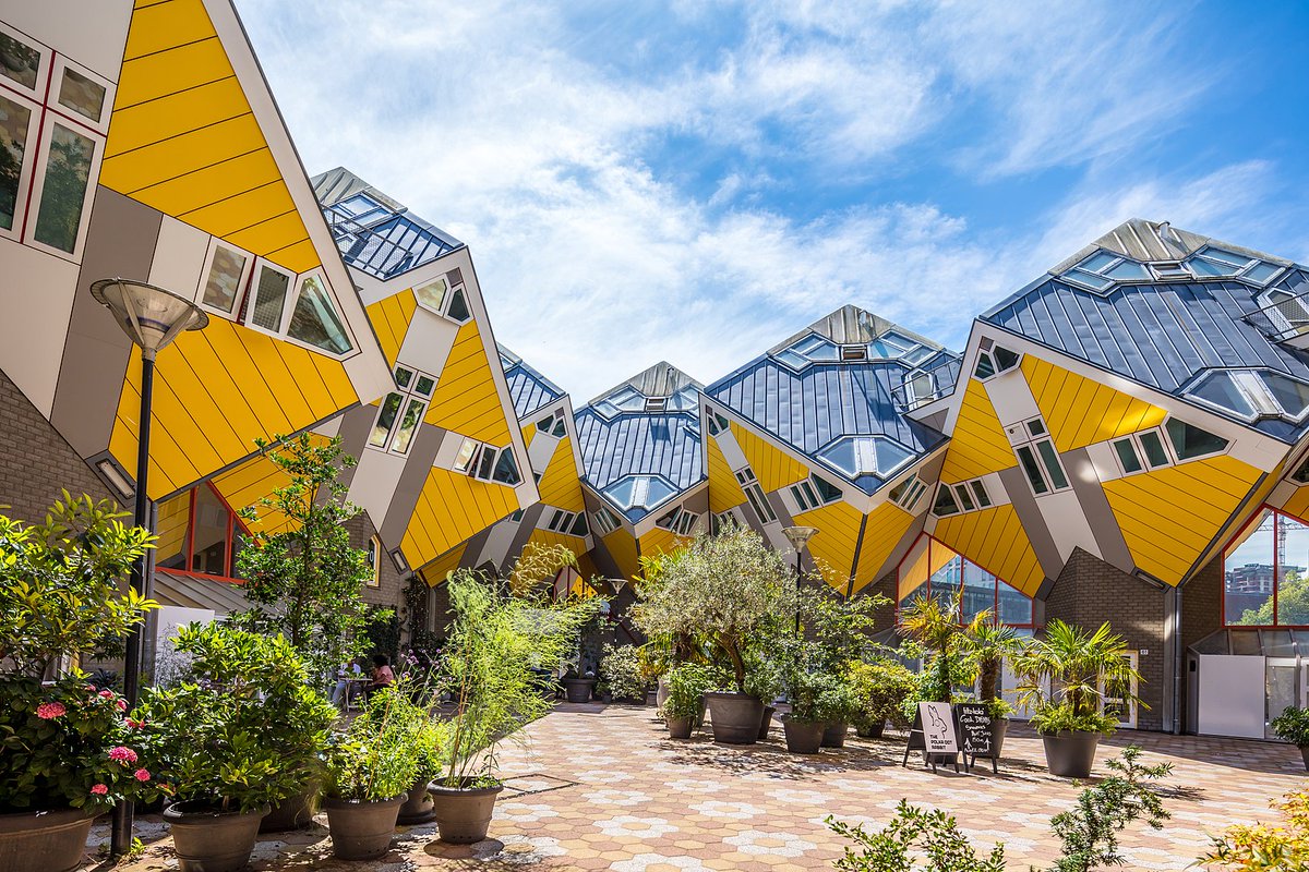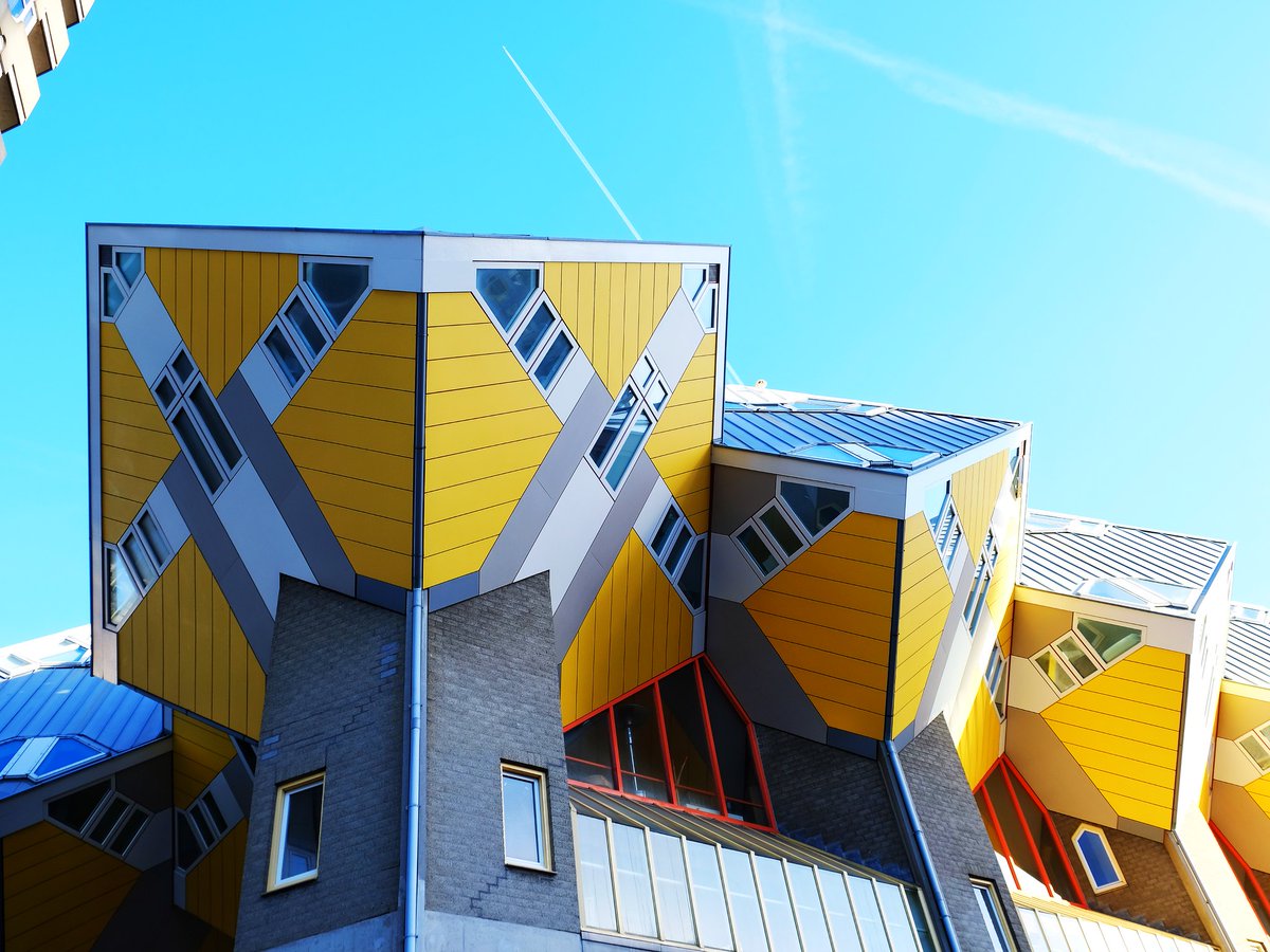 Sin embargo, a mí me gusta pensar que las Kubuswoningen son así y son un símbolo de Róterdam porque Róterdam era la ciudad perfecta para experimentar con la arquitectura moderna, pues allí casi no había patrimonio antiguo.