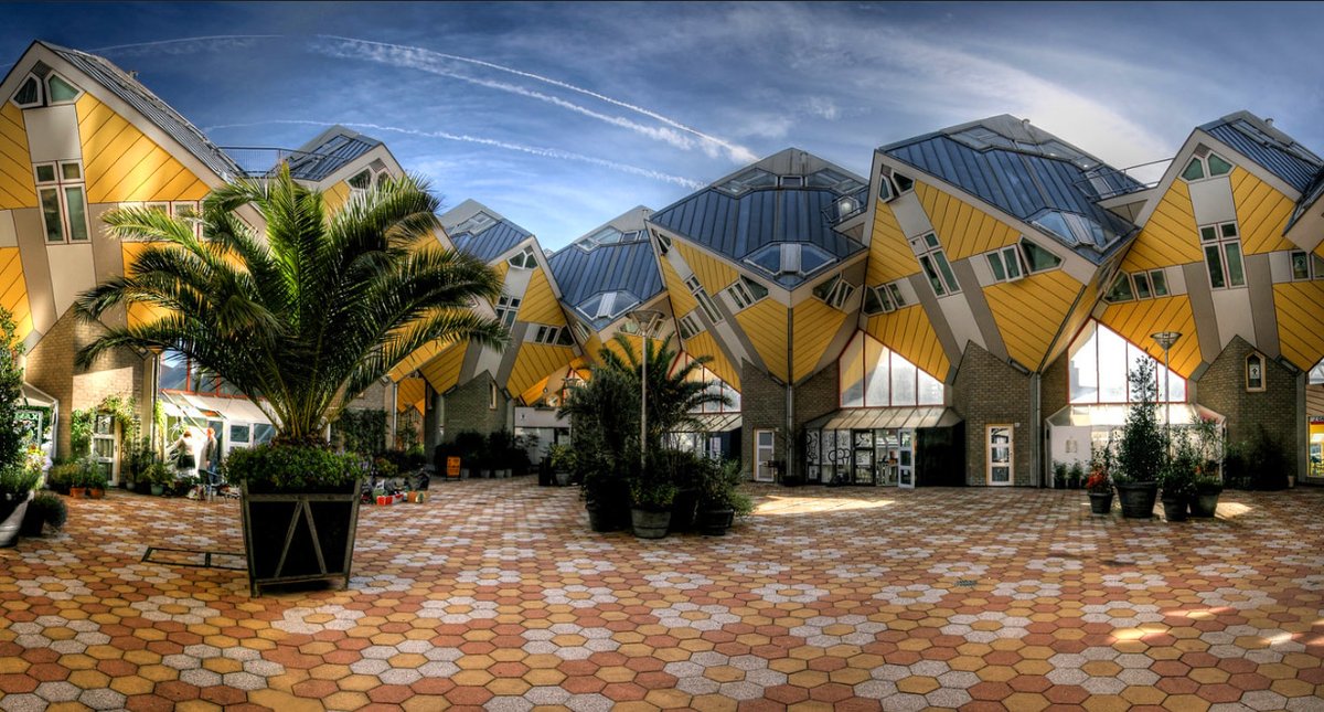 Por eso (quizá por eso) unas viviendas extrañas, flotantes, inclinadas y un poco difíciles de vivir, son un símbolo de Róterdam.