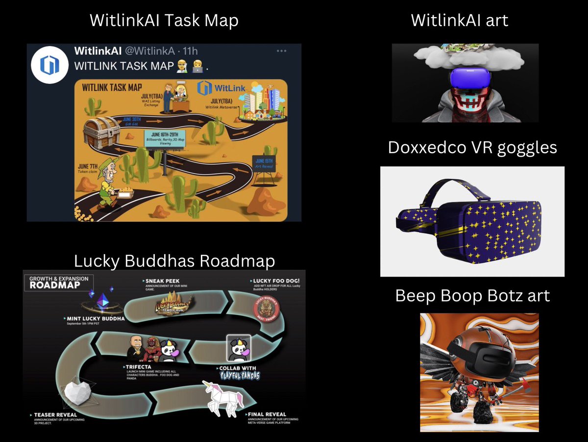 9/ Izadi says he knew nothing about the team, but ran giveaways as a favor for his friend @kryptoking1. Interesting that the WitlinkAI roadmap looks similar to the Lucky Buddhas Roadmap… oh and so does the Witlink 3d art and the Shaolin Samurai art. 🤔