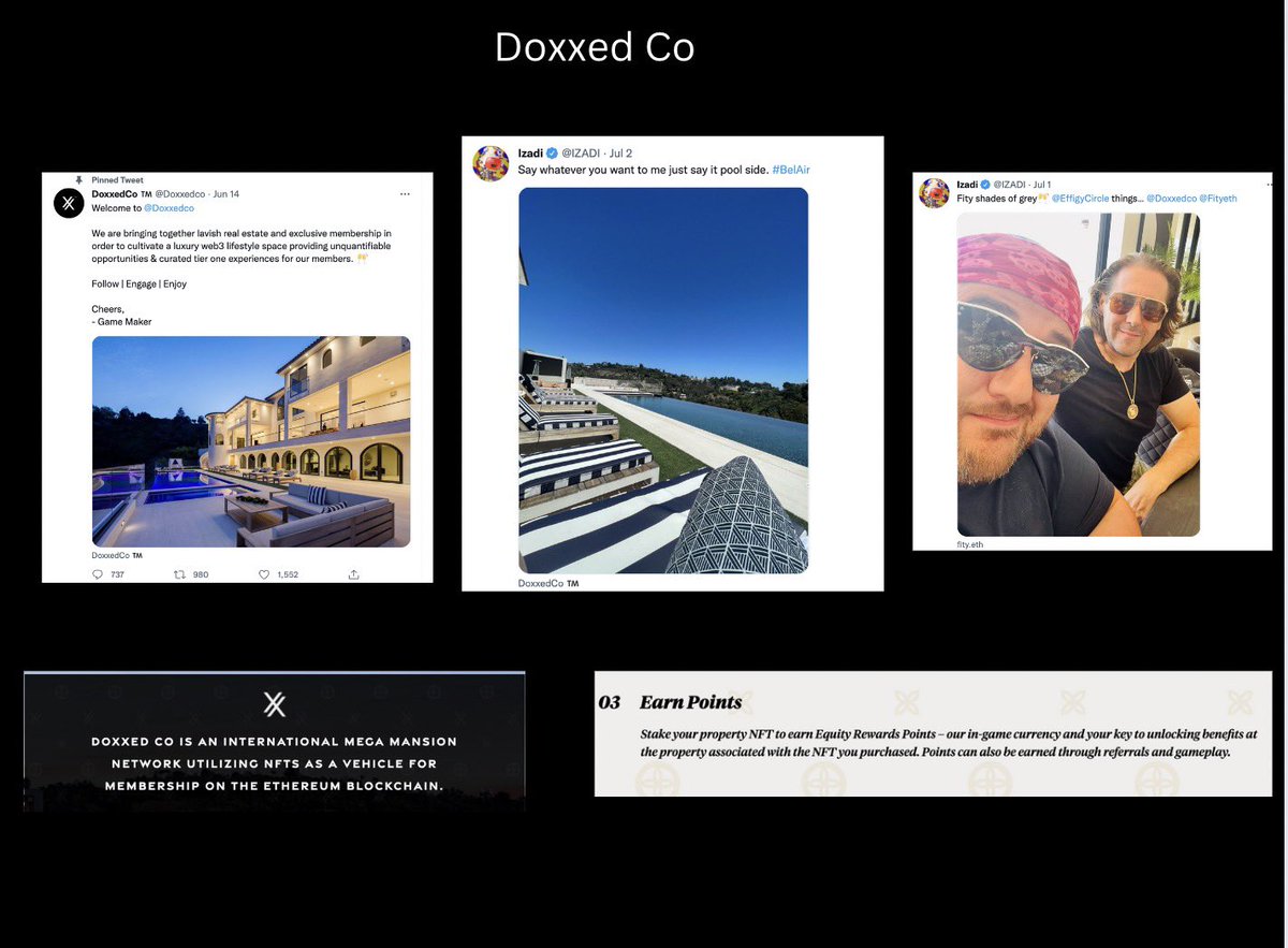13/ Doxxedco @Doxxedco gives holders access to a $100,000,000 mansion in Beverly Hills, a mansion that Izadi does not own. The Twitter has been silent since… What happened to your phat crib bro?