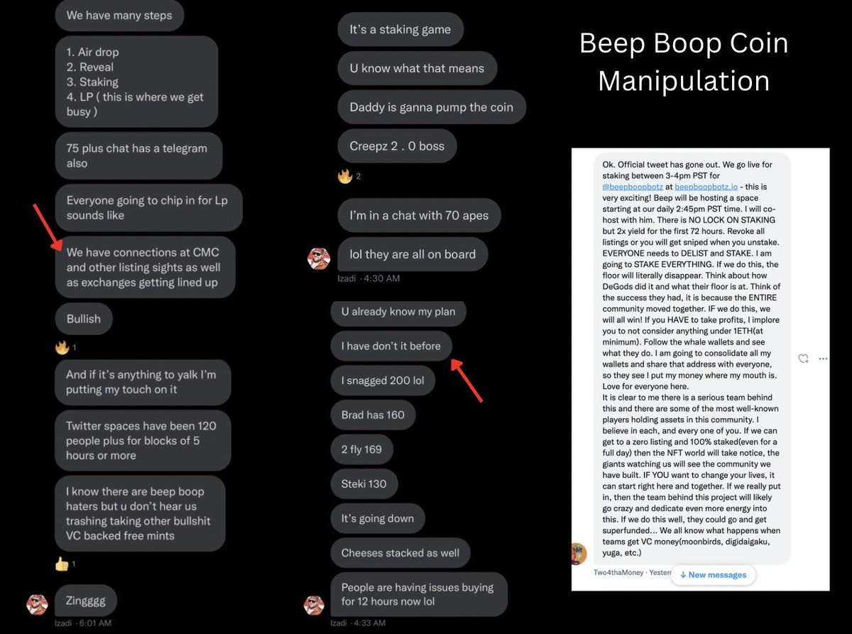 Izadi tells his chats that he will make a call to get the Beep Boop coin on @CoinMarketCap then “Sell NFTs into momentum” exactly the same plan he had with Witlink, doxxedco, emojiverse etc.