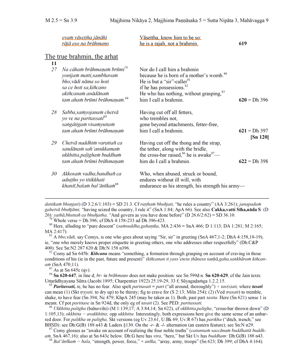 22/n In the same Vasettha Sutta Vasistha & Bhardvaja ask Buddha if one becomes Brahmin by birth or by karmana ?
