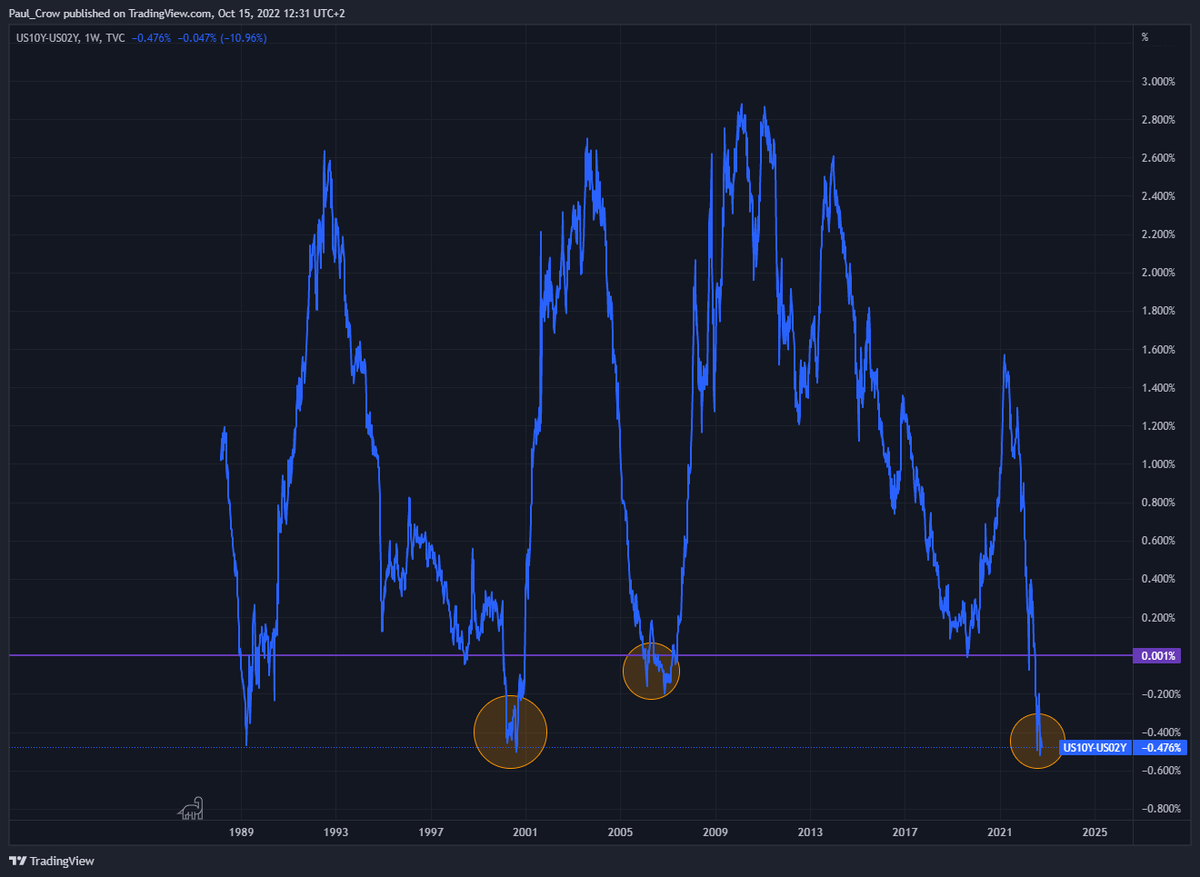 Zerknijmy na kolejny wskaźnik różnica w yield obligacji 10Y i 2Y. przypomina 2000, oraz 2008 czyli przepowiada nam recesję. Jak dużo o tym przekonamy się w najbliższych miesiącach.