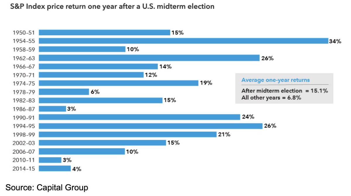 Po wyborach następuje ulga i od lat 50 nie było ujemnego zwrotu na #sp500 w ciągu 12 miesięcy po wyborach. 🤯