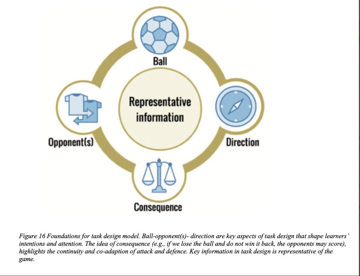 In game formats - When manipulating constraints keep the movement (how players perform skills/interact with the environment) similar to the movement in the game- Make sure that the movements/how players interact/perform skills are driven by REPRESENTATIVE information