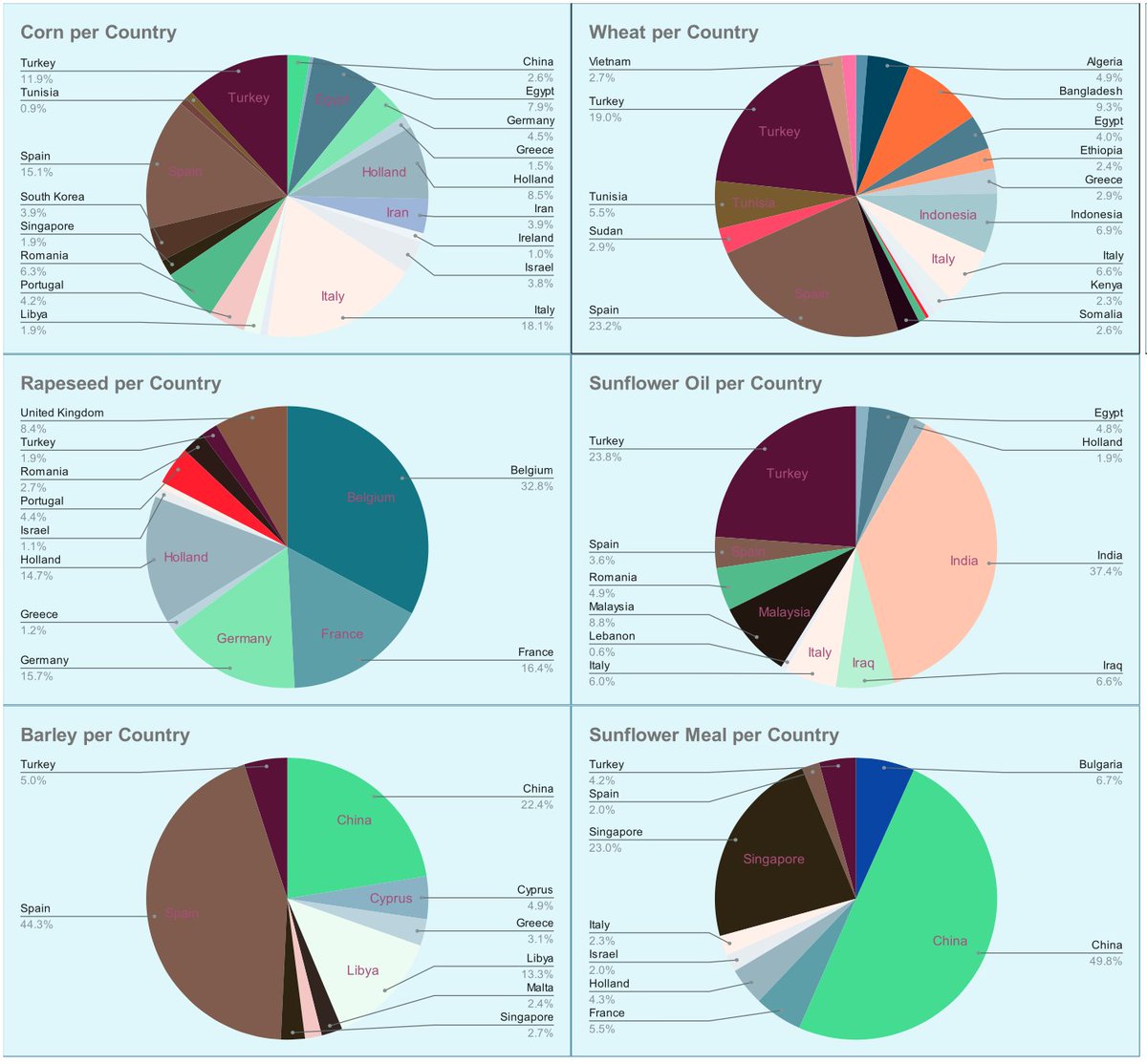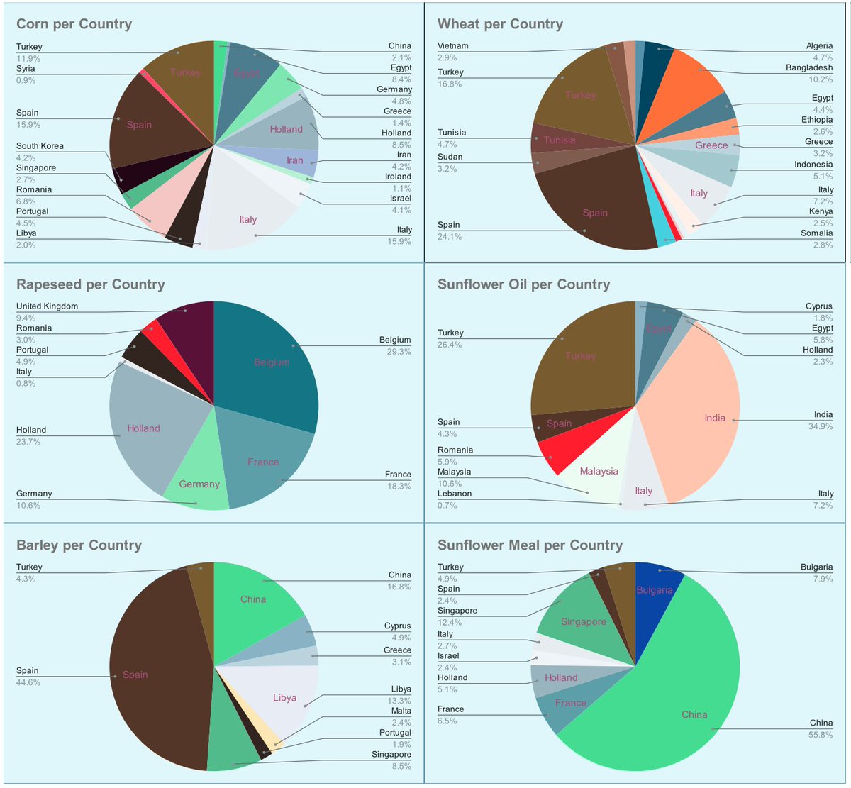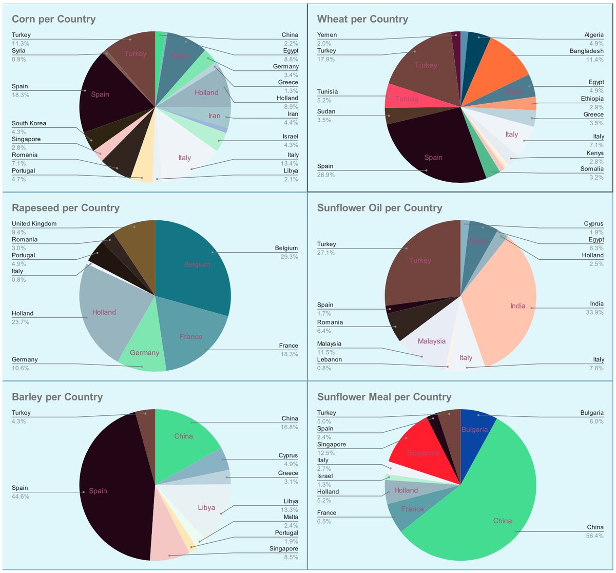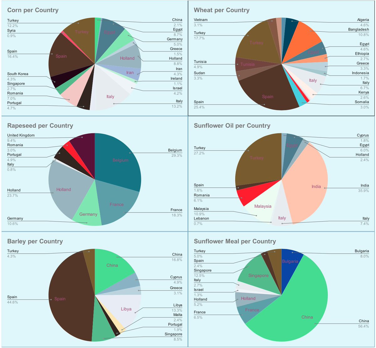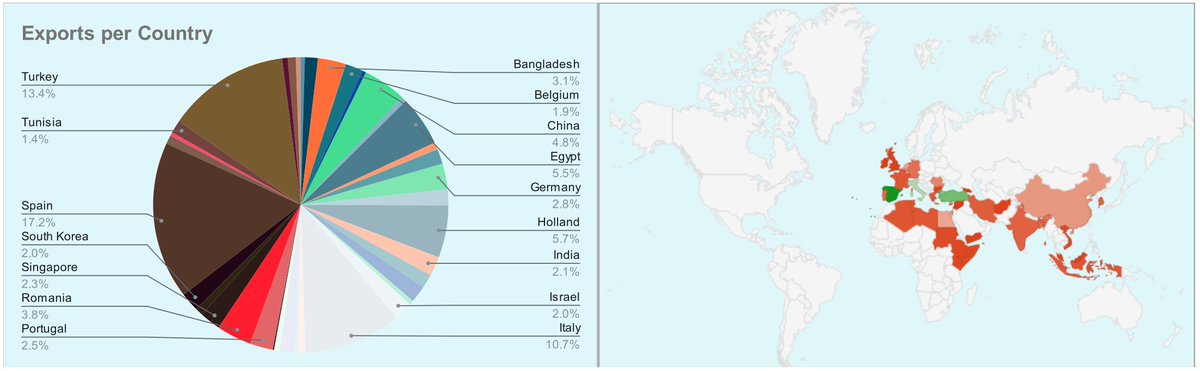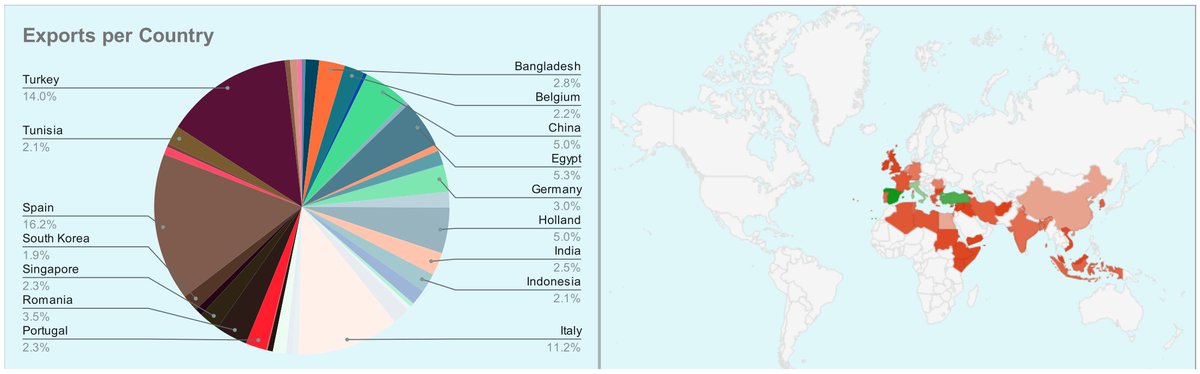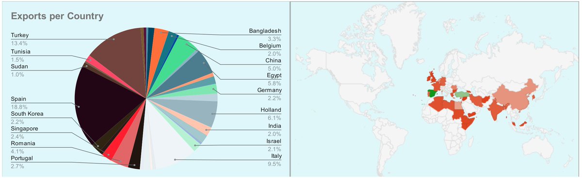 Spain, Turkey and Italy are still the biggest importers. Again, a reminder that Turkey is often a transit hub.