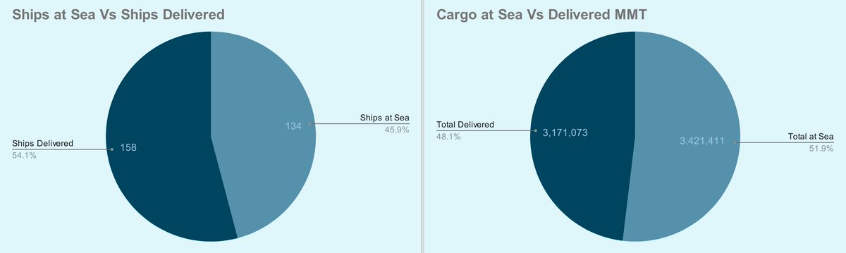 42 days left in the grain deal, 292 ships outbound, 158 delivered, 6,592,484 MT shipped and 3,171,073 MT delivered. Another @WFP ship is underway!🧵⬇️ #oatt#wheat#corn#barley#sunflowers