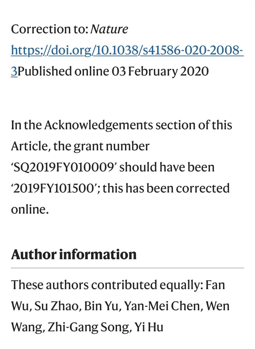 Posteriormente realizan una corrección en Nature al paper pero no cambian ningún dato del genoma, solo la hacen para cambiar el código del proyecto. nature.com/articles/s4158…