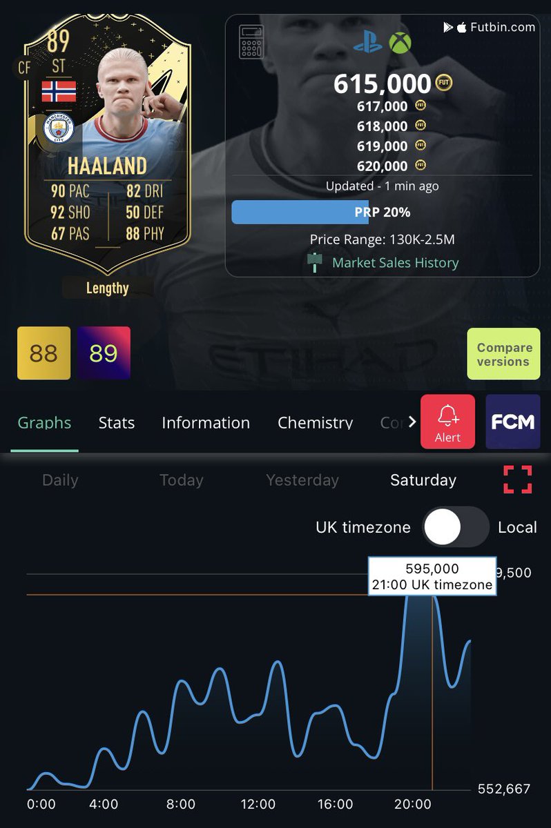Here are two examples. I also prefer to do this method with special cards, as they generally have less supply on the market. However, gold cards like Haaland, Ronaldo, Neymar, Vini all fluctuate nicely.