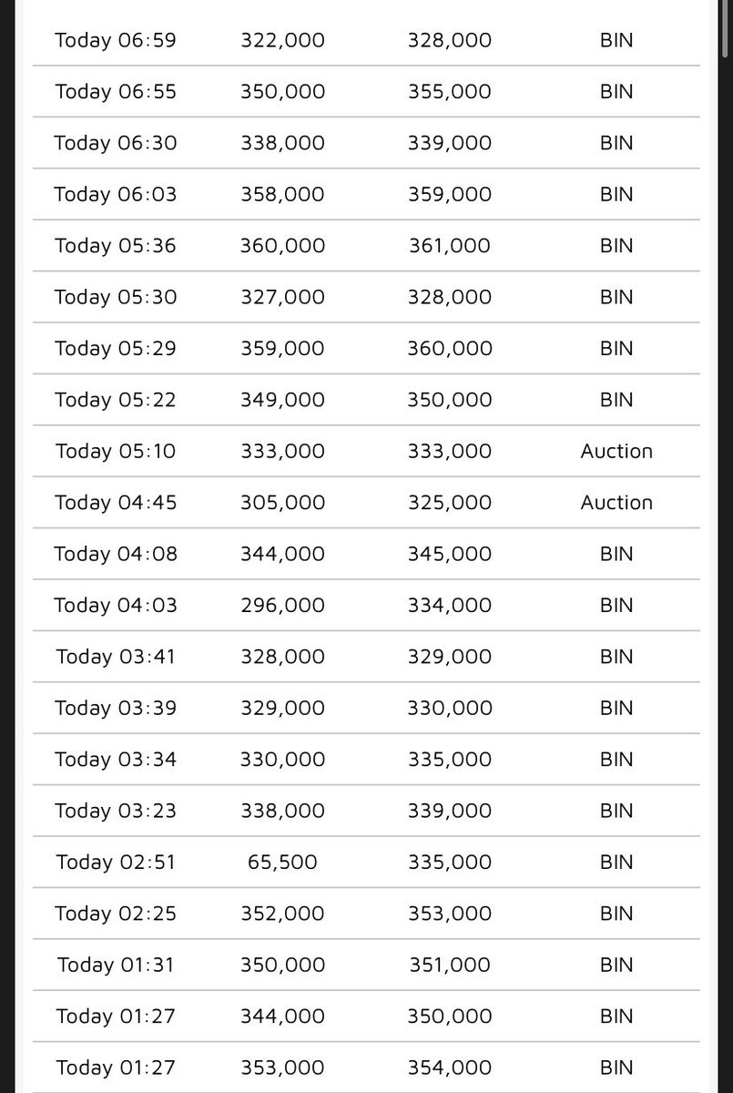 Click on the ‘sold prices’ tab and you will get a list of all prices that the icons have sold at on the market.