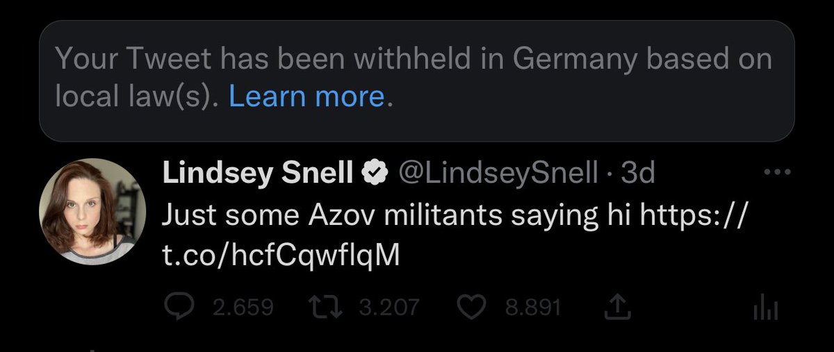 Germany withholding a tweet showing Azov fighters in Ukraine doing the heil Hitler salute on the basis of the law against Nazi symbols is amazing irony. The German gov can fund and arm them, but journalists can’t show photos of them proudly exhibiting their white supremacy.