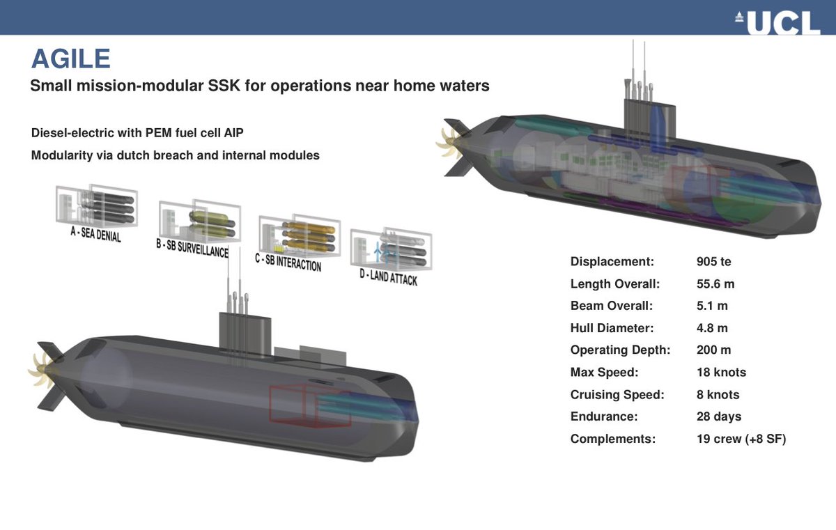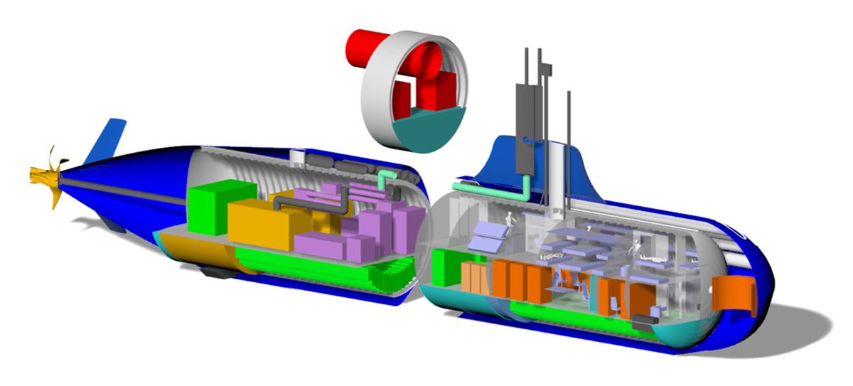 Whilst MAGPIE was designed with diesels and batteries due to budget limitations, an AIP option was also developed using a hull plug: