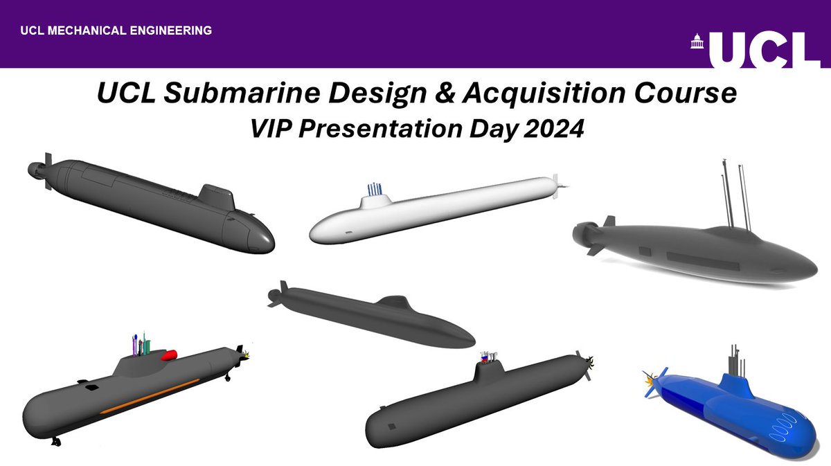 So today’s the day of the 2024 UCL Submarine Design and Acquisition Course VIP presentations. Seven designs this year, developed to requirements produced by the staff: