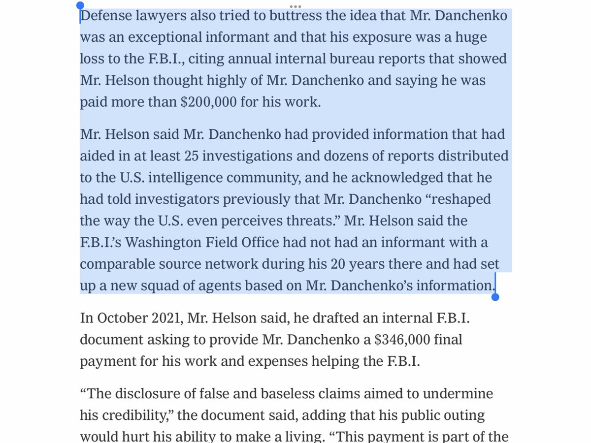 FBI witness, called by prosecution: Danchenko “reshaped the way the US even perceives threats,” bureau had not had an informant with comparable source network during his 20 years there.