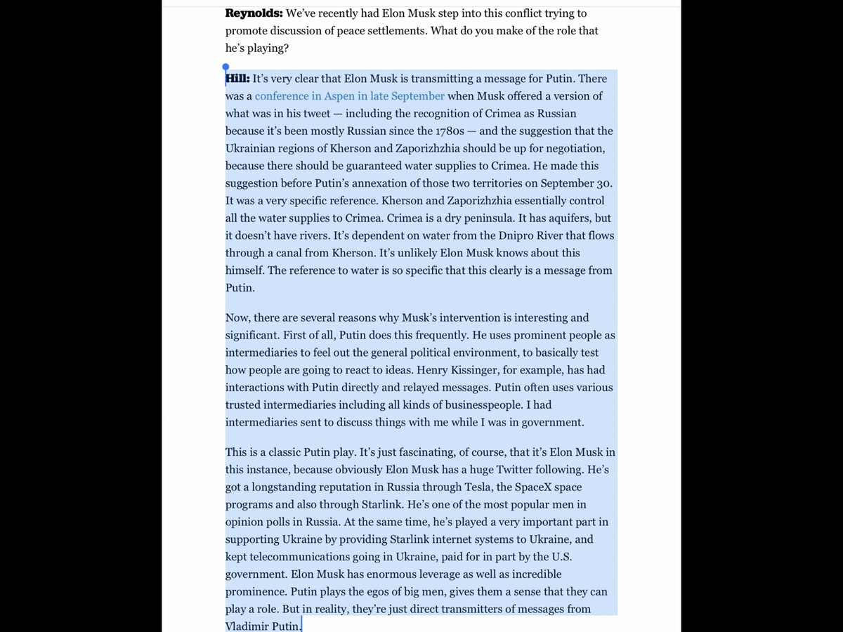 🧵 Hill sees Putin trying to get the West to accede to his aims by using messengers like billionaire Elon Musk to propose arrangements that would end the conflict on his terms. ‘Putin plays the egos of big men, gives them a sense that they can play a role. …
