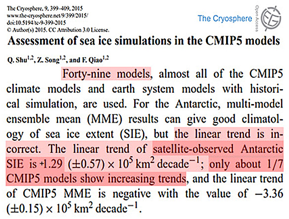 En 2013 le GIEC avait rapporté que 3 des 114 modèles CMIP5 « couvraient » avec précision les 15 années précédentes de changements de température. Trois, c'est "certains", d'accord.