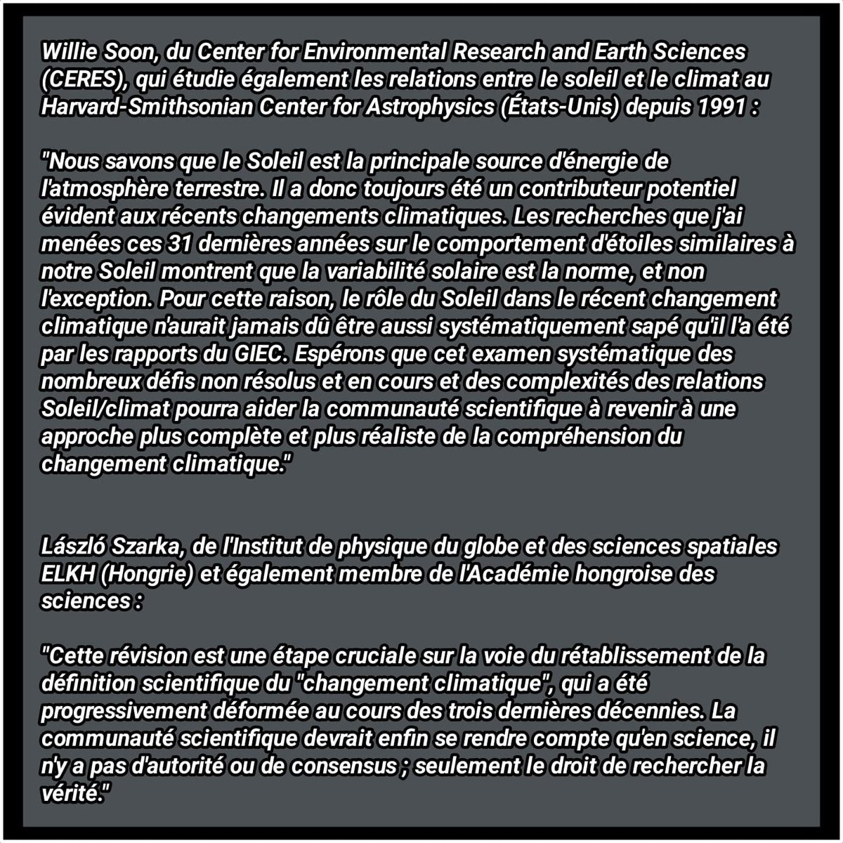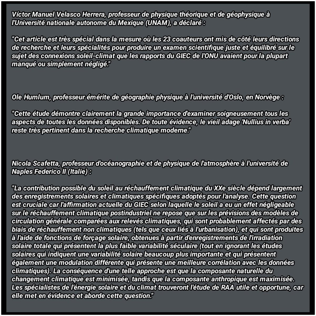 23 experts dans les domaines de la physique solaire et de la climatologie contredisent le GIEC - la science n'est *PAS* établie