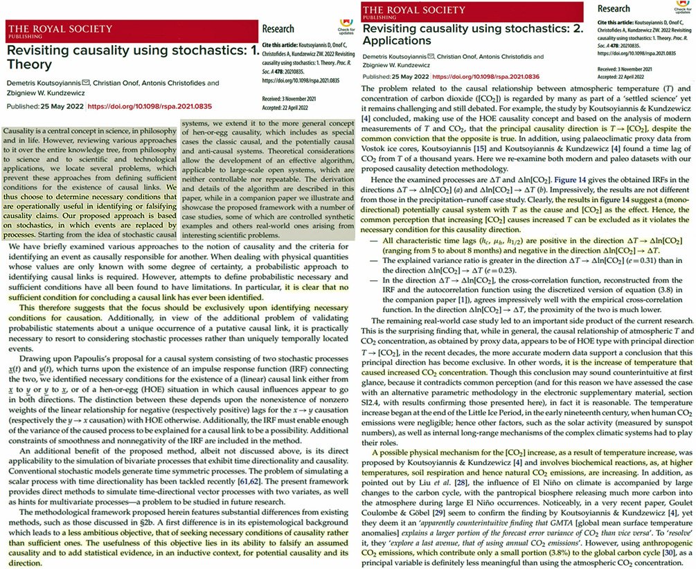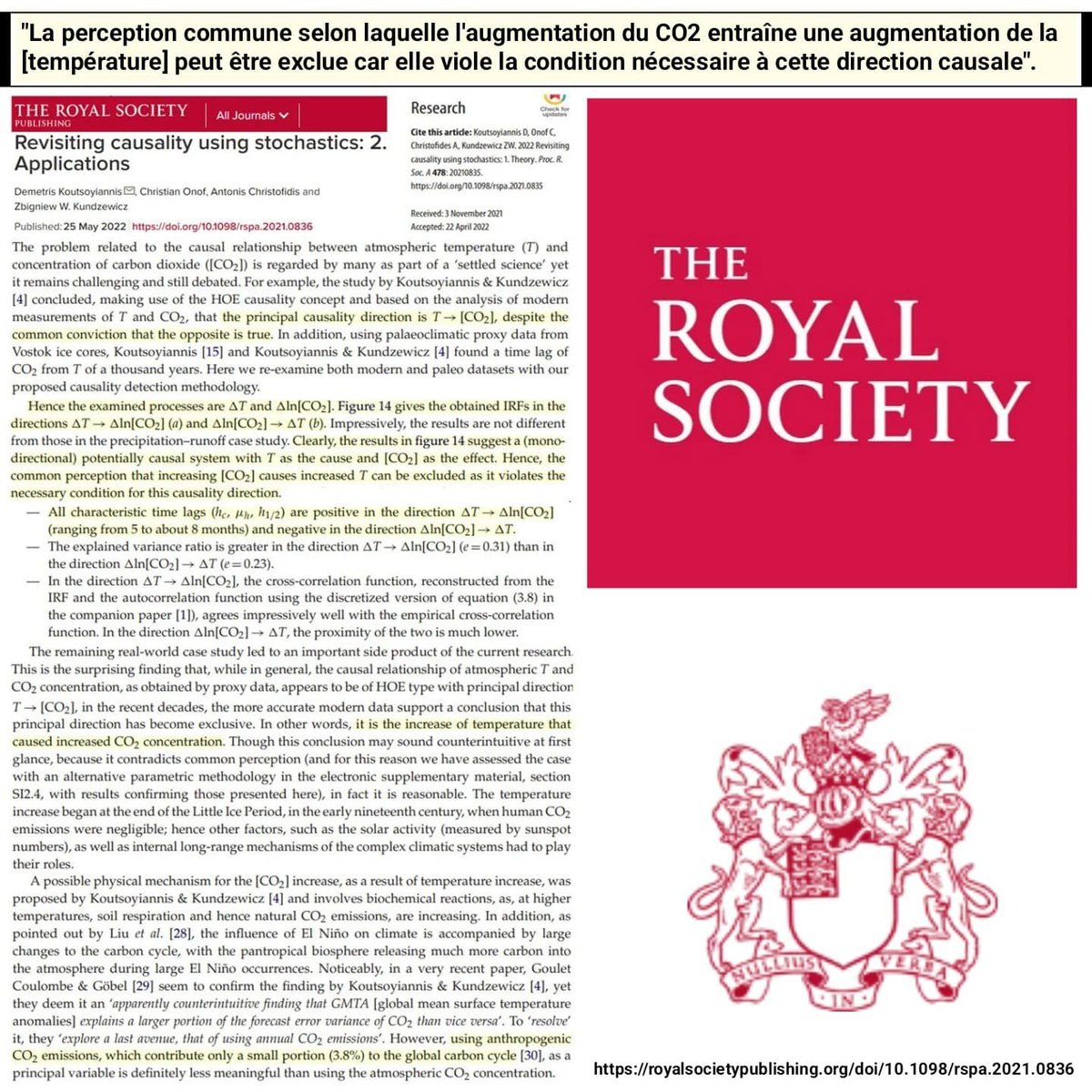 [Thread]🧵La méthode scientifique montre que l'idée que le CO2 est à l'origine du réchauffement de la planète “peut être exclue car elle viole la condition nécessaire à cette direction causale.”