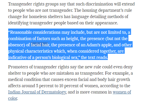 There is no law that defines gender/sex. Biden has been enormously great on allowing gender to be self-defined in almost all regs. This stands in contrast to Trump's definition, which included "obvious characteristics like facial hair" which was transphobic as hell (see pic).