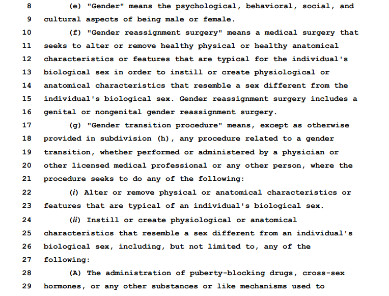 This would bar gender affirming psychological care nationally to any trans youth under 10, in some readings it would make it illegal for schools to accept gender changes as that would be “exposing children to transgenderism”