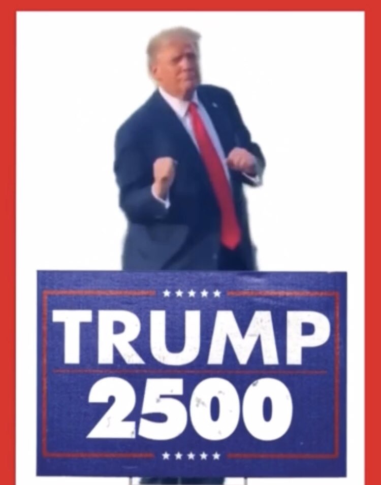 Today, Trump put out a Hitlerian video on Truth Social — where he dances (buffoon card) in front of signs that say “Trump 2024 —> Trump 2500.” He wants to be America’s first dictator. This is what Fascism looks like. Donald J Trump must be prosecuted now for his litany of crimes: