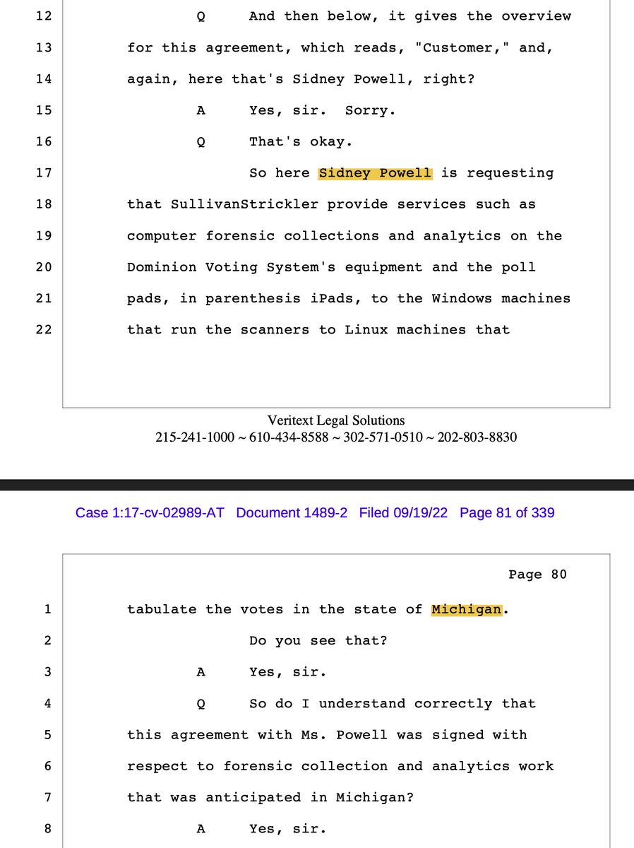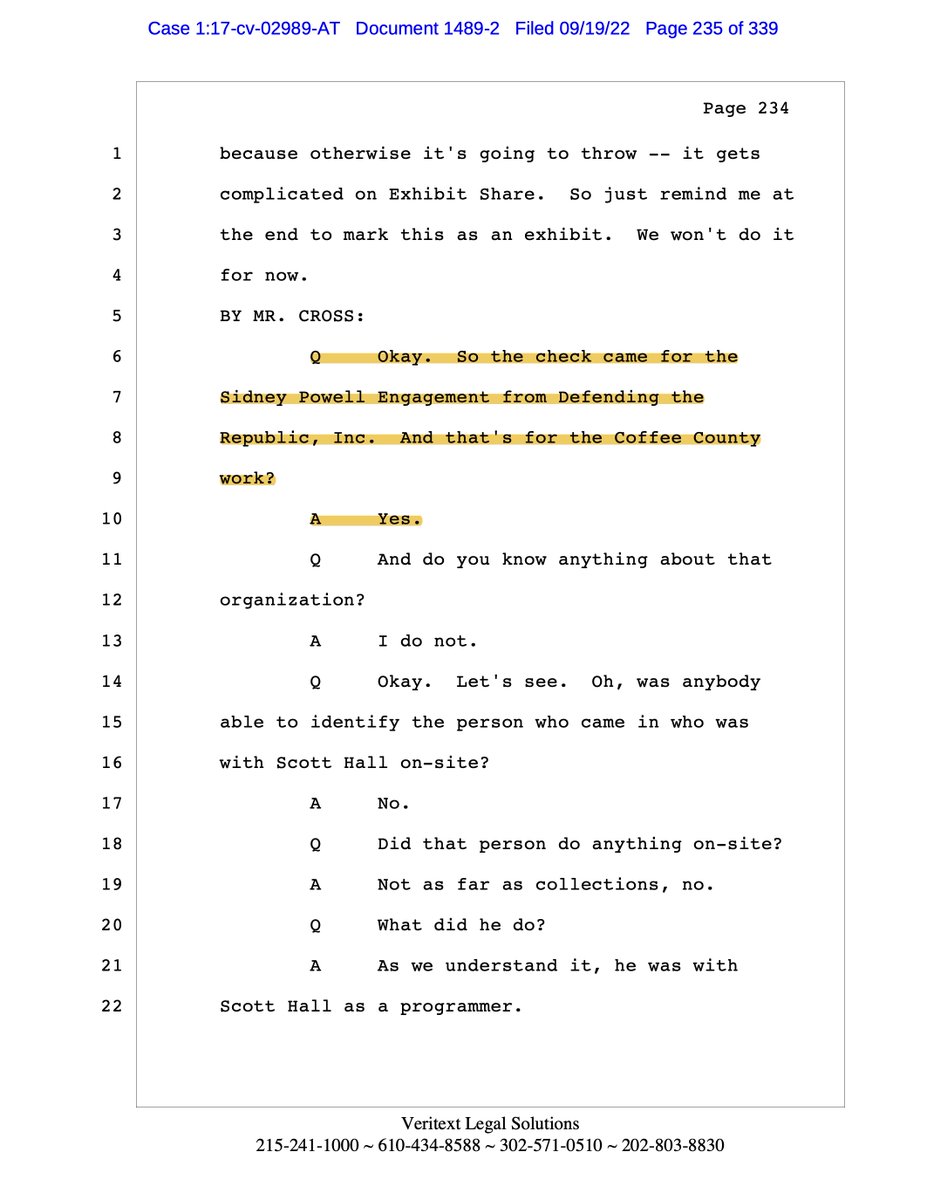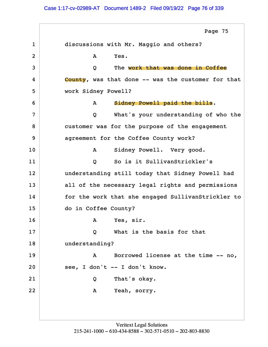 Q: The work that was done in Coffee County, was that done -- was the customer for that work Sidney Powell?