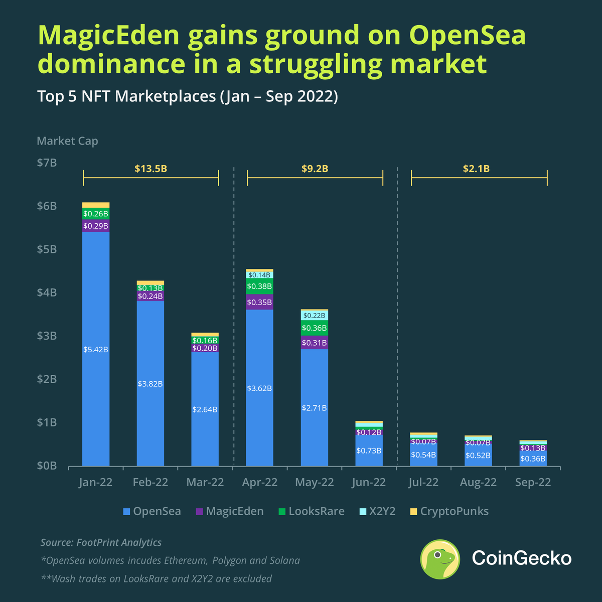 • Top 5 NFT market places saw a 71% fall in QoQ trading volume.