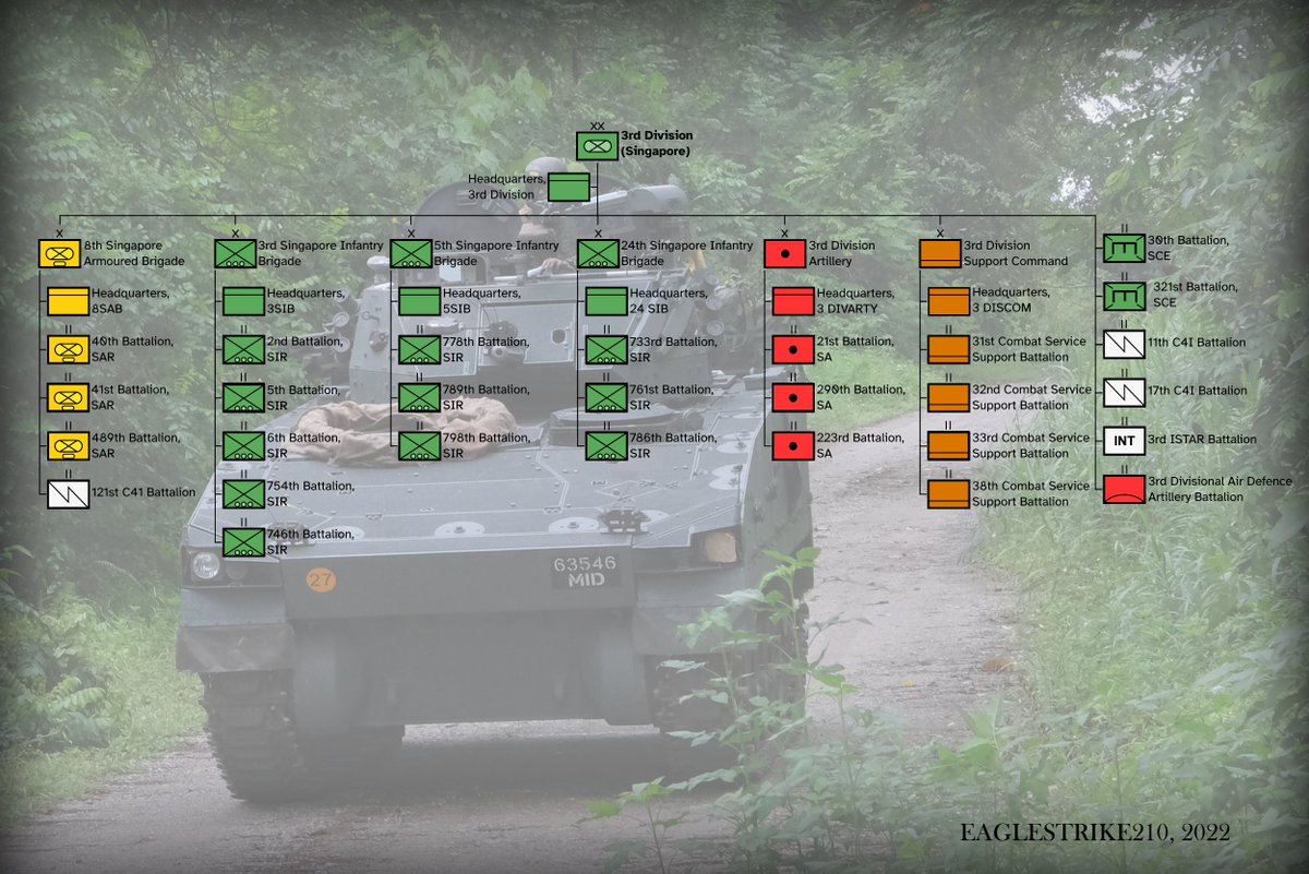 3rd Singaporean Infantry Brigade (3 SIB) contains the Division's active battalions, these are volunteer formations equipped with the Terrex ICV developed in the early 2000s.