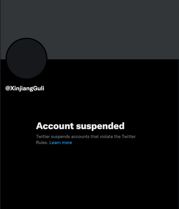 It turns out they were right to be suspicious. Twitter suspended the @XinjiangGuli account in late May 2021.