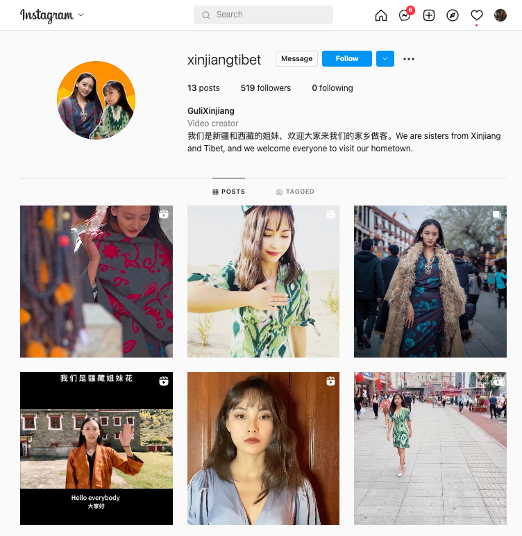 The women, who introduce themselves in the above video as 'Elder Guli' & 'Younger Guli', two 'Uyghur sisters from Xinjiang', featured in the ‘Story of Xinjiang by Guli’ (SOXBG) set of accounts on YouTube, Twitter, Instagram & TikTok.