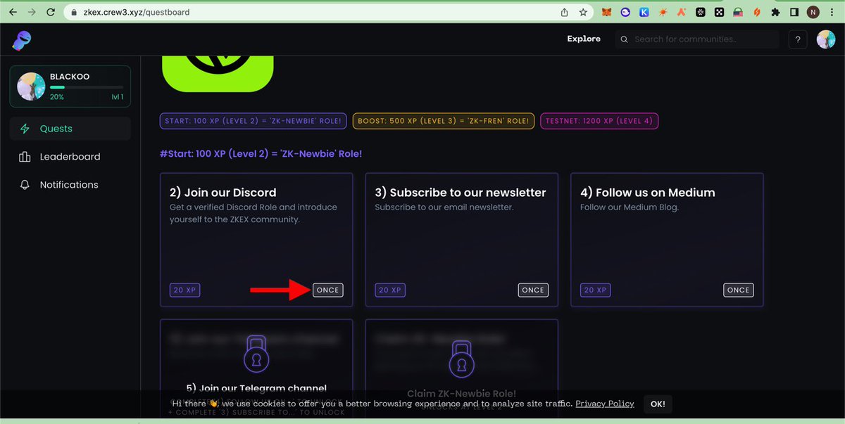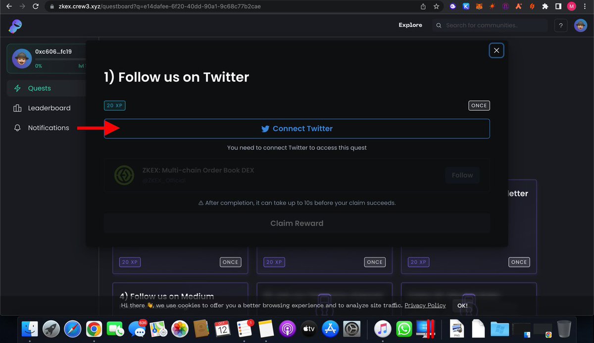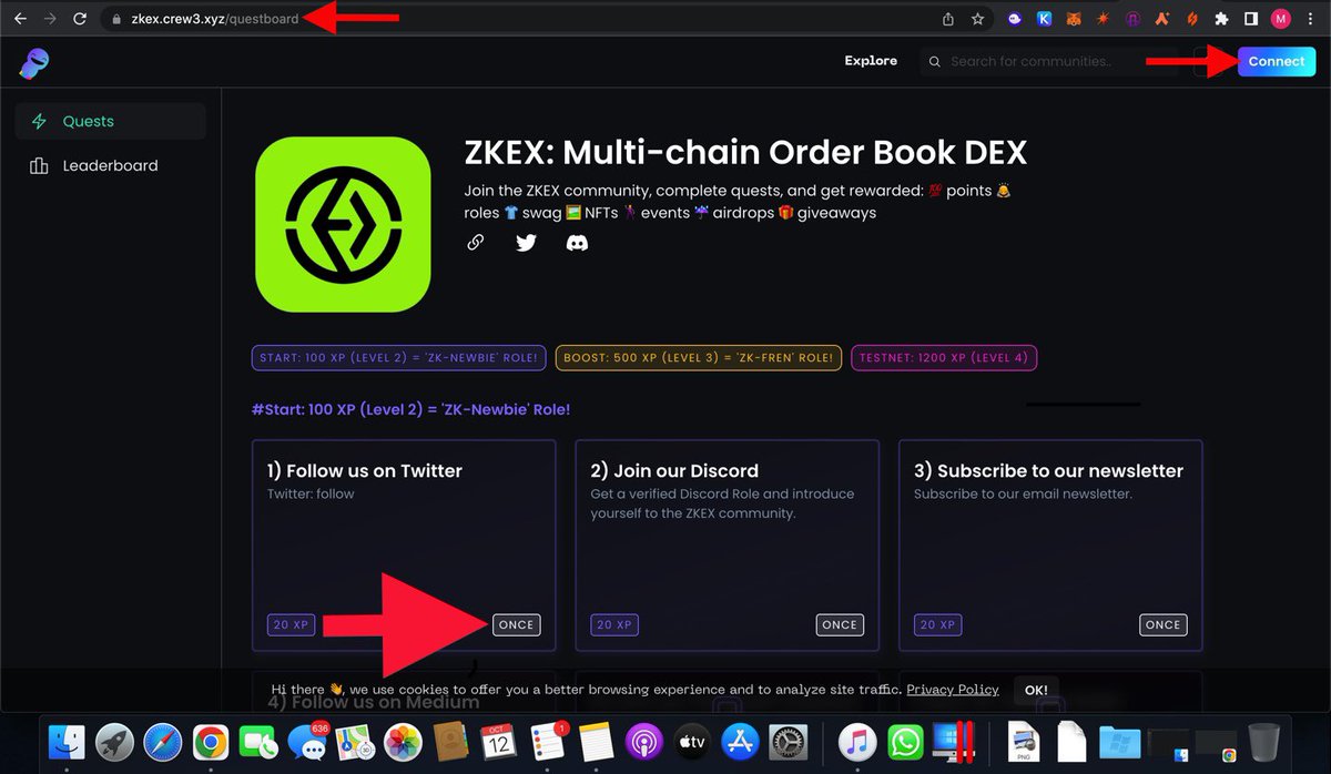 First Go To zkex.crew3.xyz/questboard
