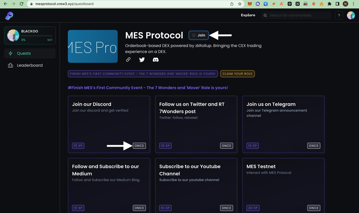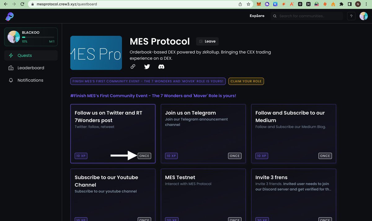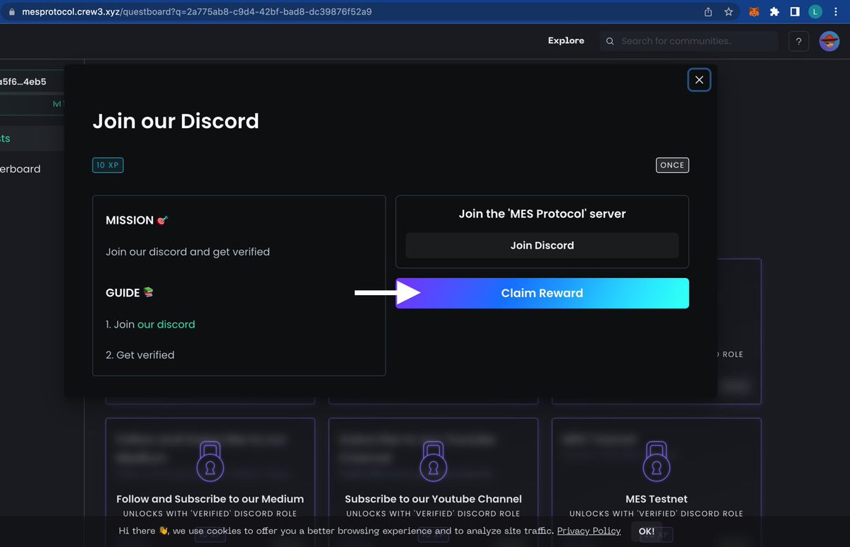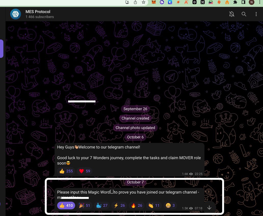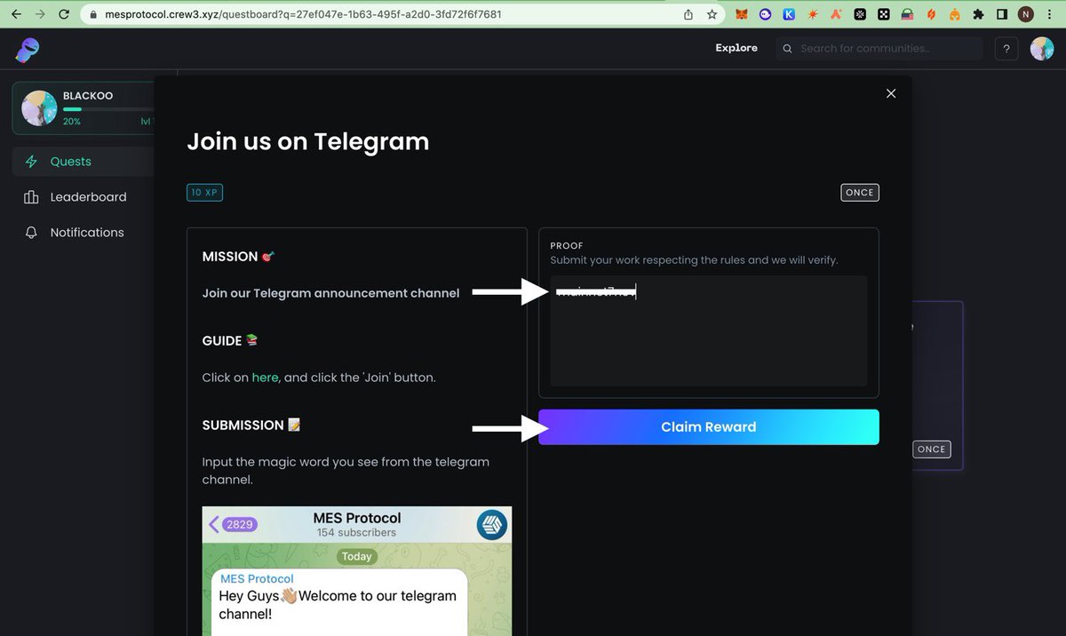 Next Quest Is To Join Telegram, t.me/MESprotocol, Copy The Magic Word You Get From TG, Go Back To The Quest, Submit Magic Word As Proof & Claim Rewards