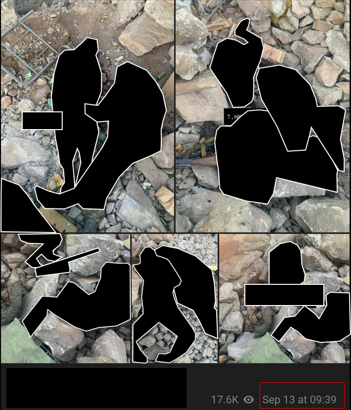 @libe Additionally, the still images of the deceased soldiers we found on Telegram and matched with the incident were already circulating on September 13 by 11:39 (local time). Note the timestamp.