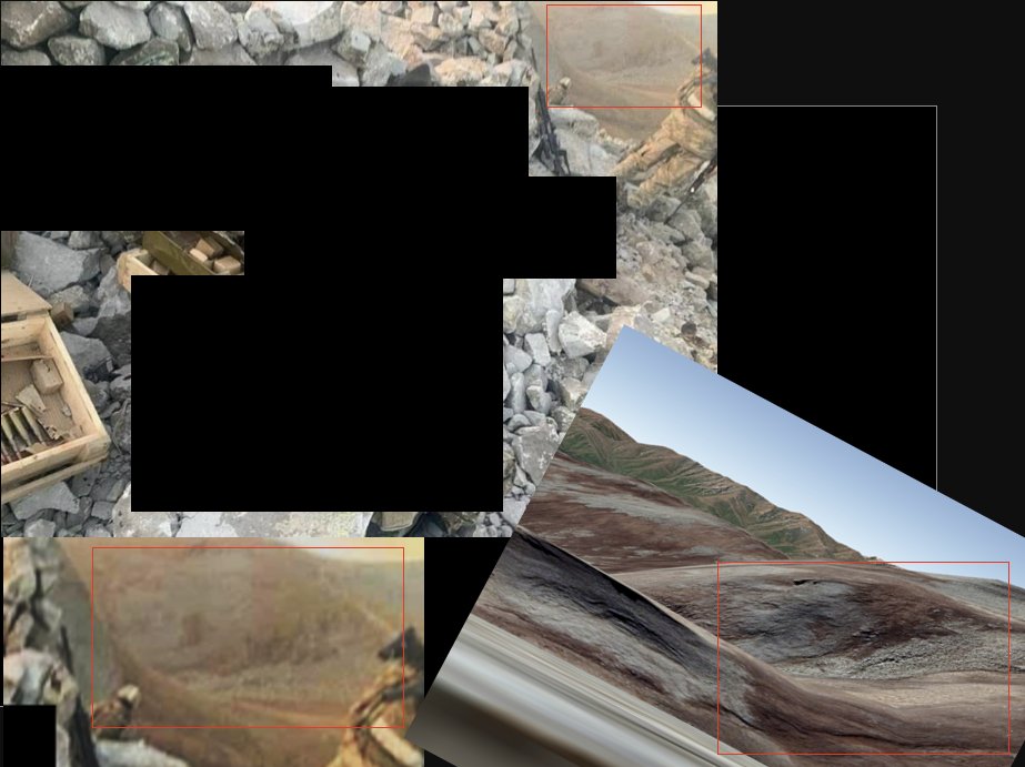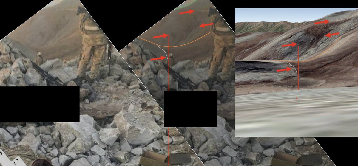 @libe The video reveals what appears to be a darkened area on the side of one of the hills in the background. We matched this dark area with a rocky patch on a peak northeast of the outpost at 39.599583, 46.193639.