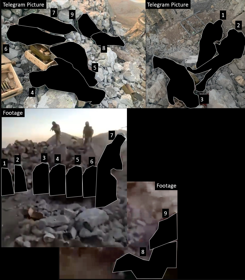 @libe A message posted to a Telegram channel focusing on the Azerbaijani military on September 13 provided further clues. Bodies and objects seen in these images were identical to those seen on the execution video that would be published just over two weeks later.